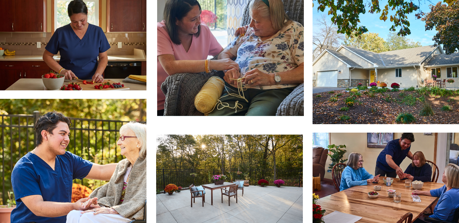 Legacy Care Home is different from many other senior care providers in the Minneapolis / St. Paul metro. We're a family-style living home, not a large facility. Our homes were built specifically for accessible, safe levels of care for all who live with us. Our Resident-to-Staff ratio is among the best in the industry, often up to five times better than other senior living facilities.